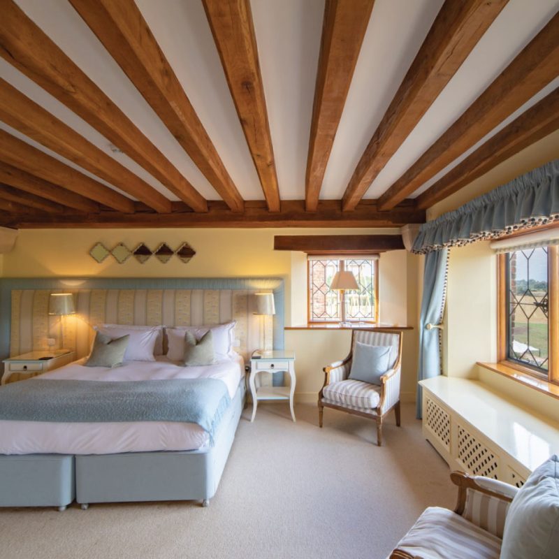 These luxury rooms with Super King beds are full of character and have great views of our grounds. With separate, spacious bathrooms featuring both roll-top baths and stand-alone showers, these bedrooms are ideal for those looking for maximum relaxation.